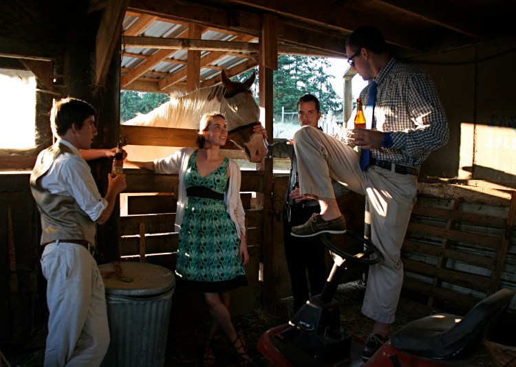 And I’m sure Chloe loves the rest of us, but Samuel, either because he’s rare, because he’s huge, like some human tank that can crush everything Chloe is afraid of, or because she has latent memories from her infancy of when he spent months on end with her, has a special place in her heart. And somehow, it’s true, everything is better when Sam is there. For one thing, everything is funny. Someone gets a good idea, and Sam makes it better. Like a spur of the moment photoshoot after the ceremony, when we were hiding out in the barn during the dry reception.