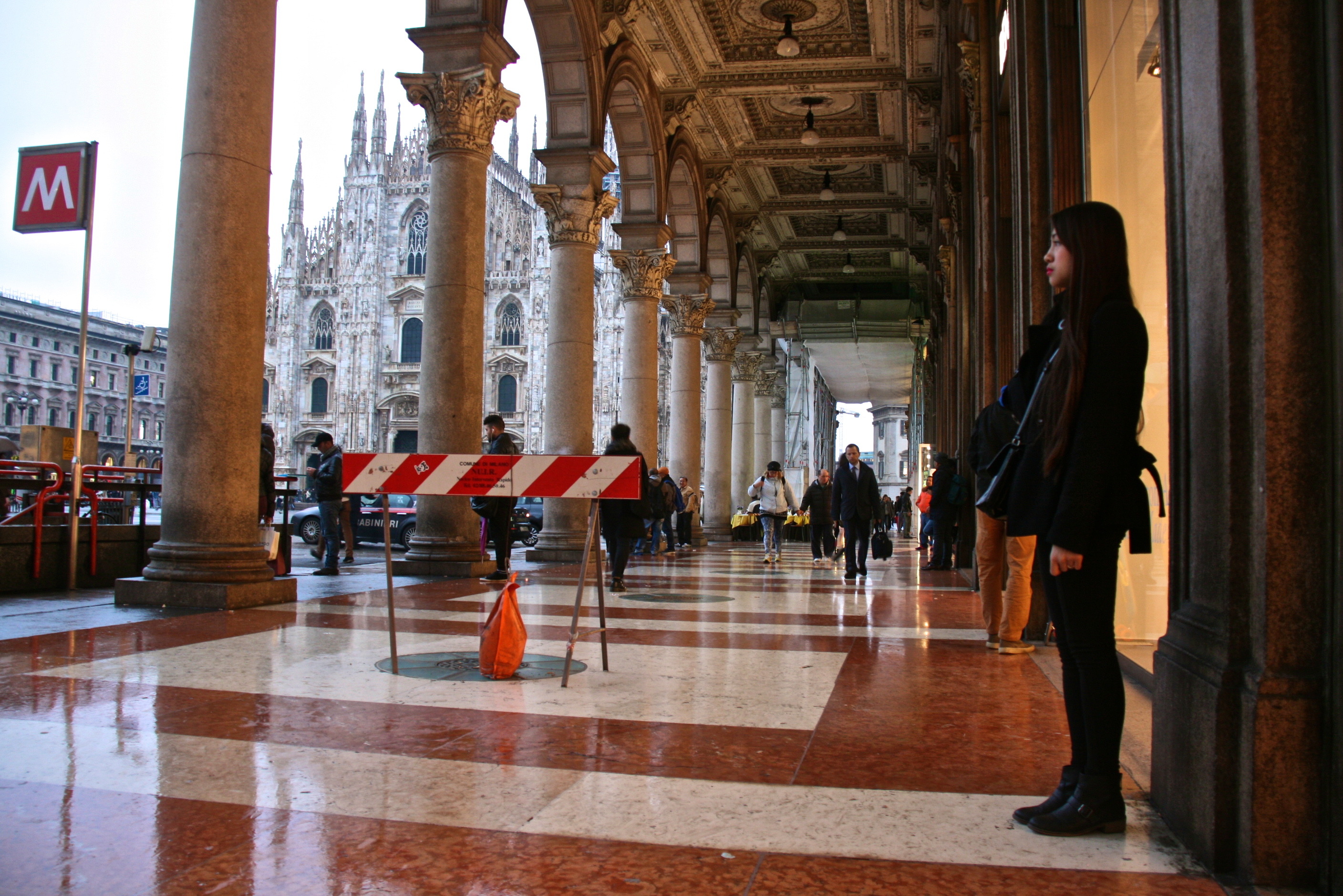 I arrive in Milan on a gray and sopping wet day, and am greeted in the baggage claim area by a bevy of tourist fliers, all of which appear to be for shopping. Haute couture shopping, fine leather goods, discount malls in nearby Switzerland. The fliers and the weather are so discouraging, in fact, that taking a nap in the airport to catch up on the sleep I didn’t get on the plane seems like the best option for the morning, so I find a not-horrible spot and pop my silicone earplugs in. Several hours later, after wiping the drool from my chin, I make my way into the city to meet up with my couchsurfing host at the prearranged time, on a particular set of stairs at a particular metro stop.