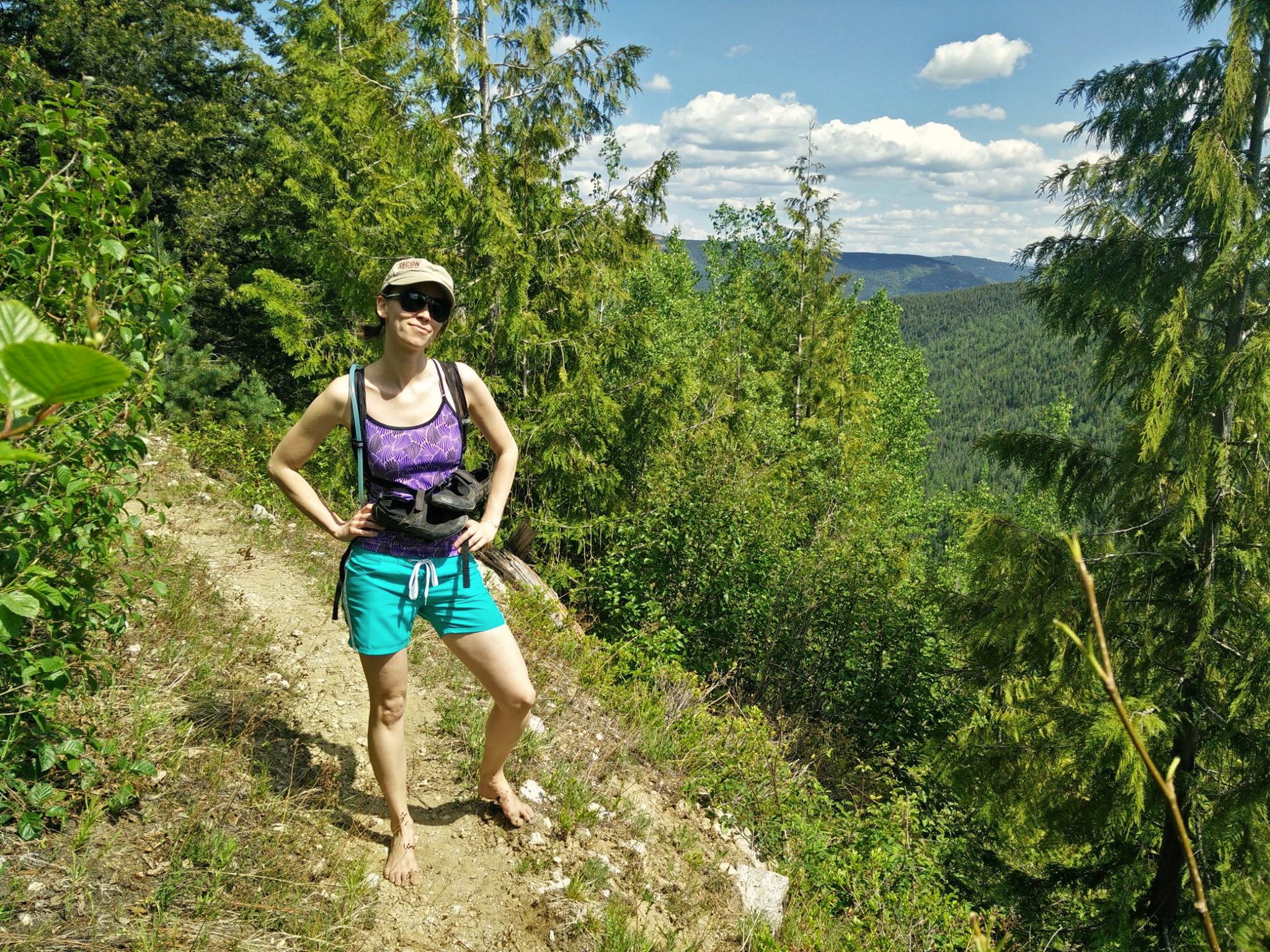 hikingI have also started going barefoot more, and wearing totally flat shoes. This last Sunday, I went on a ten-mile hike up the side of a mountain, through frigid streams and over sand and gravel. I did at least a couple of miles barefoot (bonus: this keeps your shoes dry when forging the aforementioned streams. Other bonus: you tend to look ridiculous, particularly if you’re already dressed like a mom from the 1990s, which encourages humility). The rest of the time I wore minimalist shoes. As Bowman points out, you need to work up to this. Your body has to adjust if it’s used to padding, especially on concrete, so easing into things is a must.